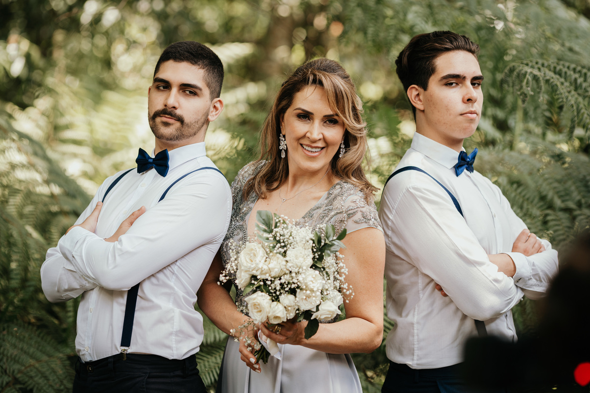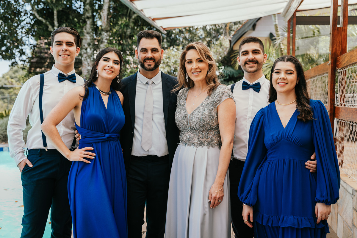 A presença calorosa dos três filhos e da nora do casal acrescentou um toque especial à celebração, criando laços familiares ainda mais fortes. Cada sorriso capturado reflete não apenas a beleza do local e a celebração, mas também a profunda conexão entre as gerações desta família.